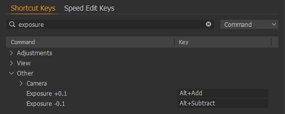 - Search for the adjustment from Capture One's keyboard shortcut set (example: Exposure)
