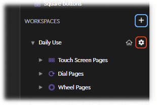 Workspaces are located at the navigation panel, right side of the Loupedeck software.