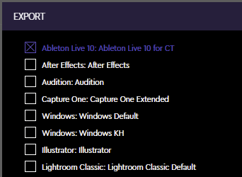 To export a profile, go to the Profile Dropdown menu and choose the three dots next to the application of which profile you wish to export. This action will open a window like in the picture below.