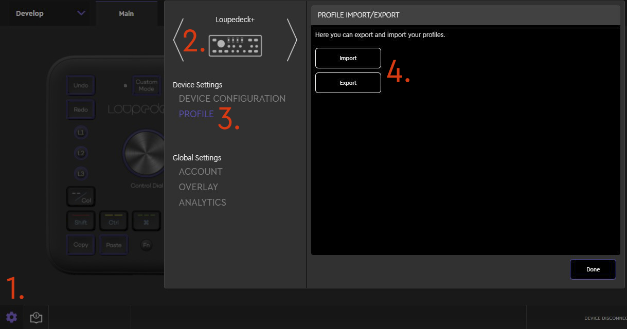 How to export the profile and import it to e.g. another computer using Loupedeck software version 5.1 or prior