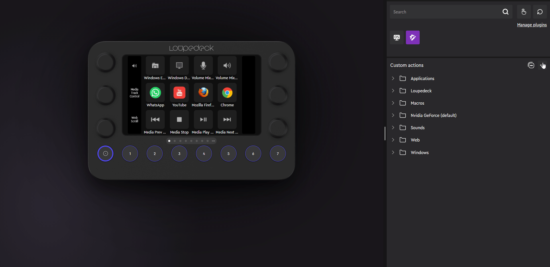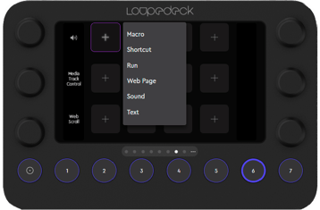 - Sound: Play a sound directly from the Loupedeck application and choose the volume and output for the sound.
