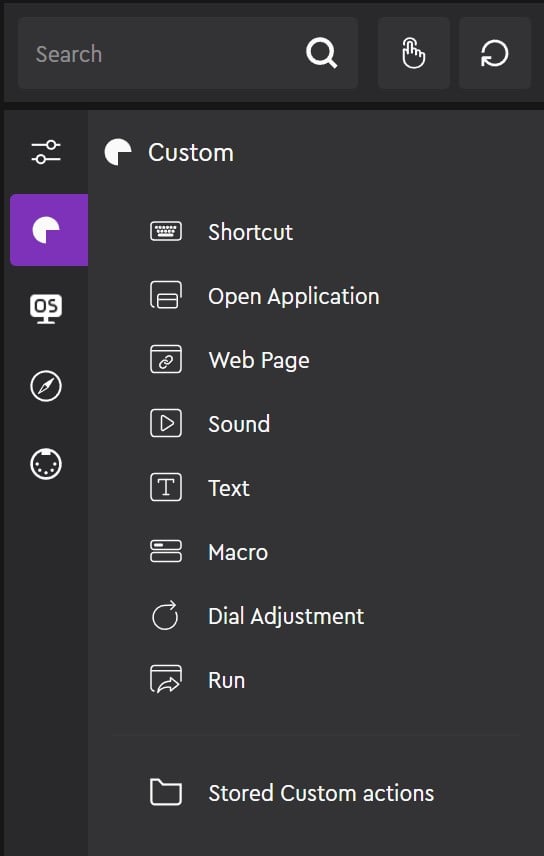 You can also create a custom action direcly to a vacant touch button by clicking the + action on the button and selecting the type of custom action you want to create.