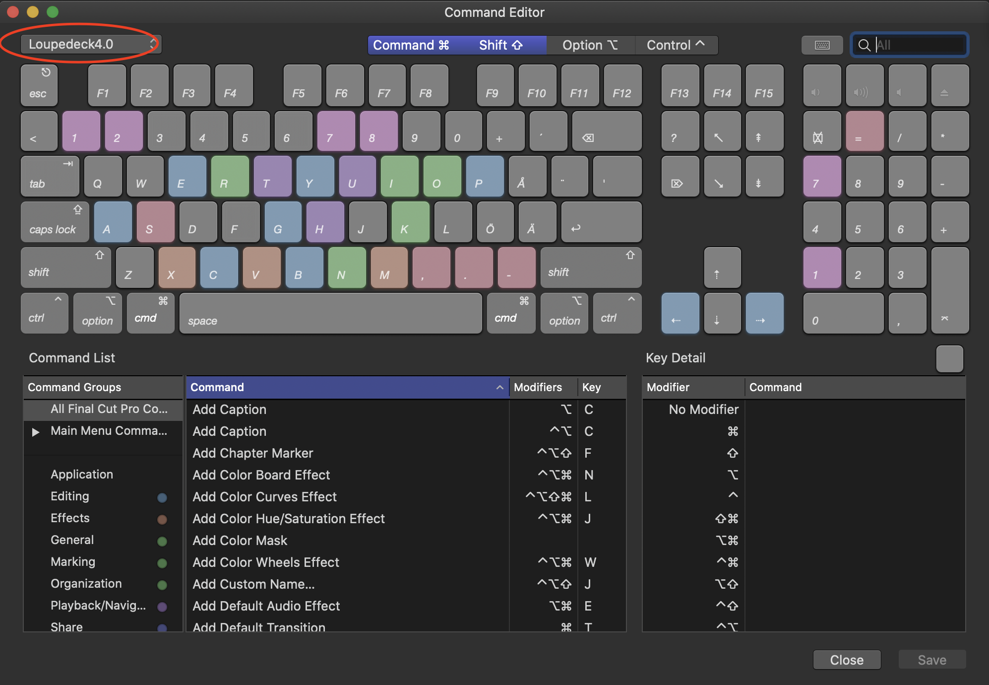 - Make sure Loupedeck commandset is selected under Menu - Final Cut Pro - Commands.