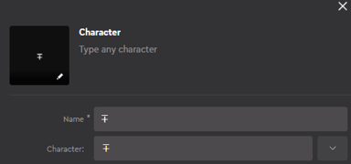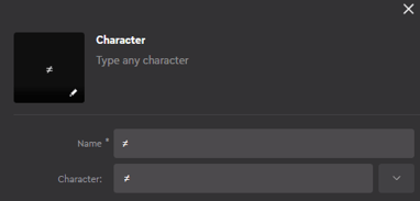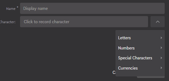 Characterアクションを作成するには、入力フィールドに直接入力することもできますし、ドロップダウンメニューから選ぶこともできます。