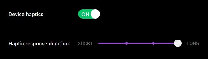 You can turn the haptics on and off, and you can choose a suitable haptic response for your touch from four different options.
