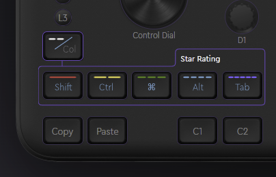 Loupedeck+ has a rating section which is divided into two pages: Star Rating page (in picture) and Color Rating page.
