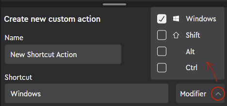 - Select keyboard modifiers with a mouse (if recording the whole shortcut is not possible)
