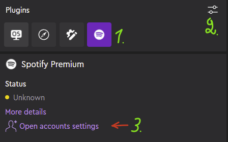 • If Spotify tab (1) is not visible, then open Plugin Manager (2) and select Spotify from the list