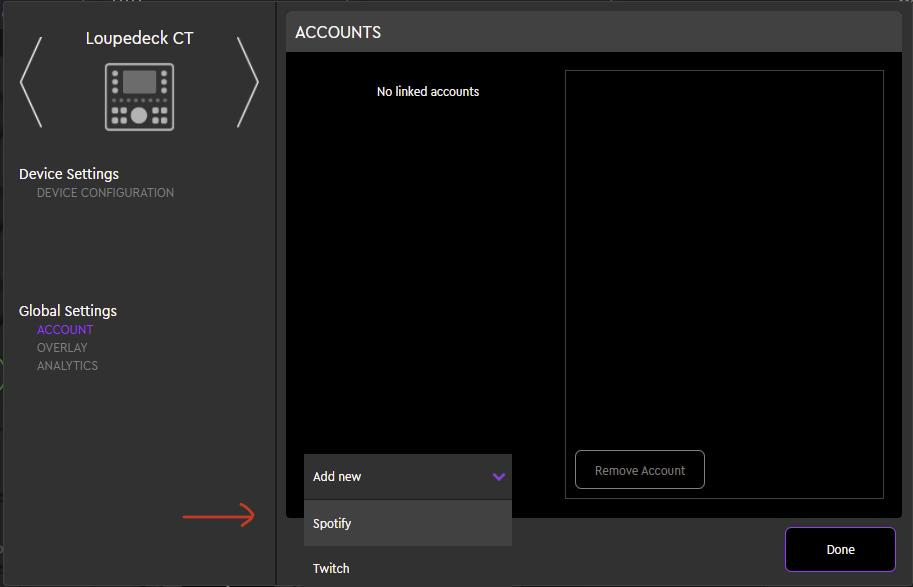 In order to get Spotify actions working by using Loupedeck you need to link your Spotify Premium account with Loupedeck software - this enables Loupedeck to send commands directly to Spotify’s cloud API system, which commands the active Spotify playback device (your computer, amplifier, TV..).