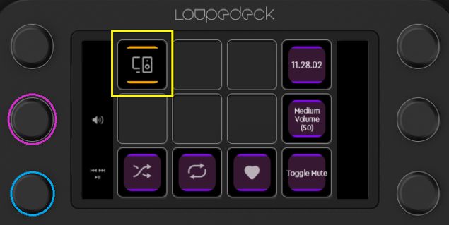 Loupedeck’s Spotify Premium plugin is designed to follow Spotify’s active device: You can use Loupedeck to control any device with Spotify capability.