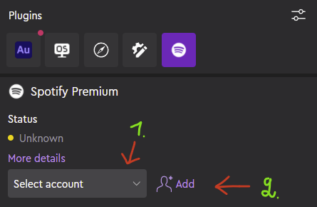 - If Spotify account has already been added, click "Select Account" (1) to select your Spotify Premium account.