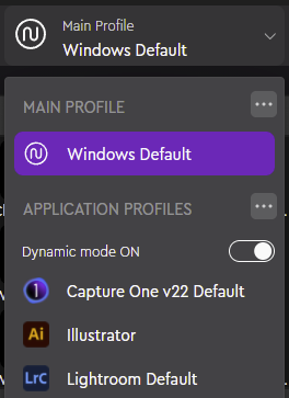 Main profile (e.g., Windows Default) can be considered as a "general profile": lt is active as long as you are not using any software which is supported by an application profile - or unless you deliberately activate another profile (when Dynamic Mode is set "Off").